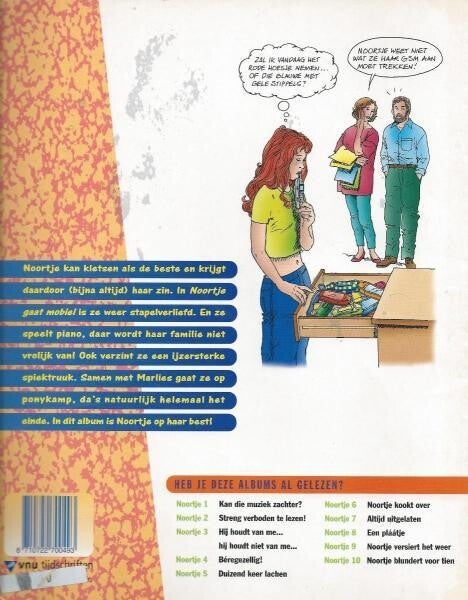 De strip gaat over het roodharige tienermeisje Noortje. Eind 1975 verscheen Noortje voor het eerst in Tina. Al gauw was ze razend populair. En dat is ze nog steeds. Populair, leuk en vooral grappig. Al twintig jaar lang. Ook dit elfde stripalbum staat weer vol blunders en humor. Oftewel, Noortje op d'r best.